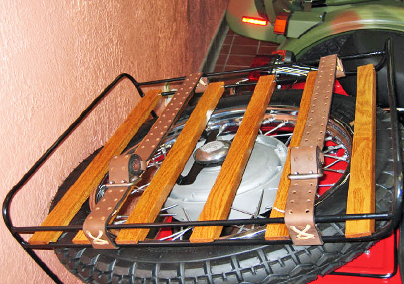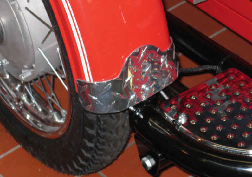 Wheeled triangle support slides under sidecar, U-bolt clamps